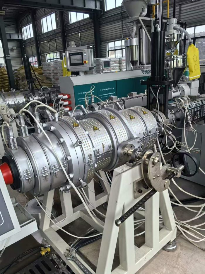 Bu 75-250 MPP boru makinesi, esas olarak MPP özel vidaları ve yüksek tork şanzımanları kullanılarak modifiye edilmiş polipropilen kablo kanalları üretmek için kullanılır. Ekstrüzyon kalıbı, özel bir tekerlek tasarımı benimser ve vakum soğutma tankı frekans dönüşüm kontrolünü benimser.