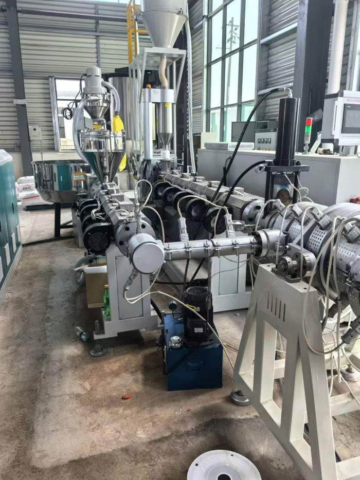 PE Granüller Malzemeli Besleyici-Single Vidalı Ekstrüder ve Kalibratör-Vaküum Oluşturma Makine-Two-Twreying Soğutma Makinesi-Kapalı Makine Knifi Kesici Taşıyıcı.