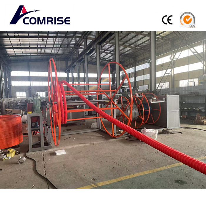 1. Boru ilk ekstrüder tarafından ekstrüde edilir ve daha sonra bükme makinesine girer, sepet ortak ekstrüzyon kalıbı borunun şeklini oluşturur. 2. Boru malzemesi esas olarak yüksek yoğunluklu PE'den yapılmıştır.
