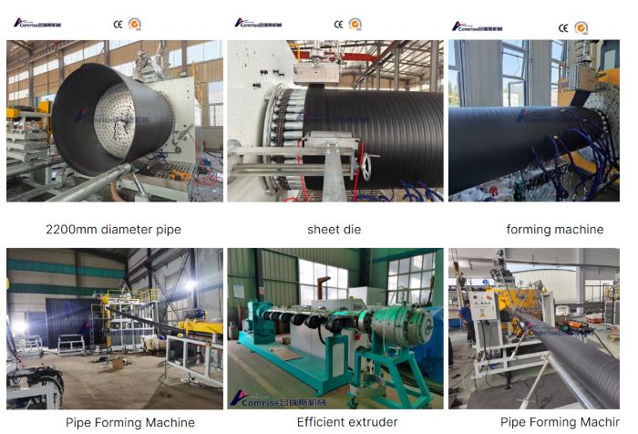 Yollu kanalizasyon ve drenaj katı duvar spiral sarma HDPE boru makinesi, Comrise makineleri tarafından üretilen, esas olarak yeraltı kriko boruları, kalın duvar kalınlığı olan içi boş duvar sarma boruları, naylor boruları, taklit karat boruları, çift plastik kompozit boru derzleri ve ince kılıflı tüplü izolasyon boruları üretmek için kullanılır. Tüpün kalınlığı, tabakanın kalınlığı ve mesafesi ayarlanarak ayarlanabilir. Operasyon esnek ve basittir ve farklı kalınlıklarda ve çaplara sahip tüpler istekli olarak üretilebilir.