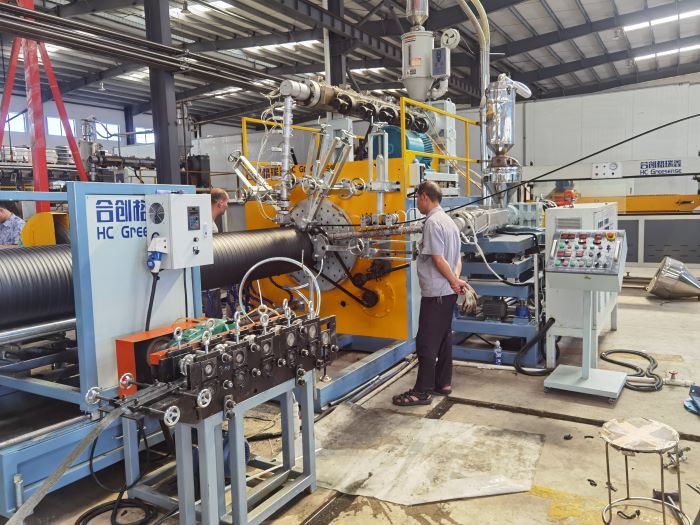 Çelik takviyeli polietilen spiral oluklu boru yapma makinesi